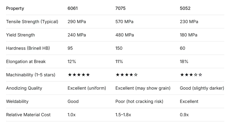 6061 vs 7075 vs 5052: The Ultimate Guide to Aluminum Alloy Selection for CNC Rapid Prototyping
